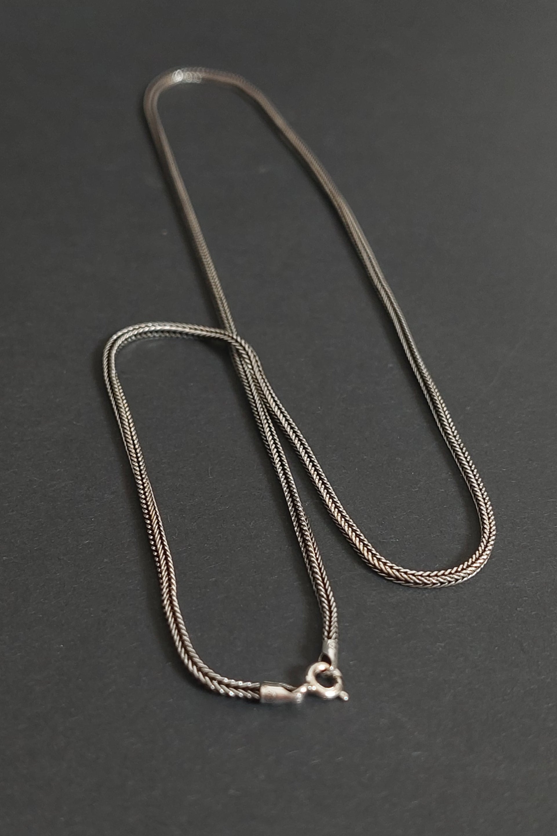 Geflochtene, dunkle Kette aus 925er Sterlingsilber mit Federringverschluss
