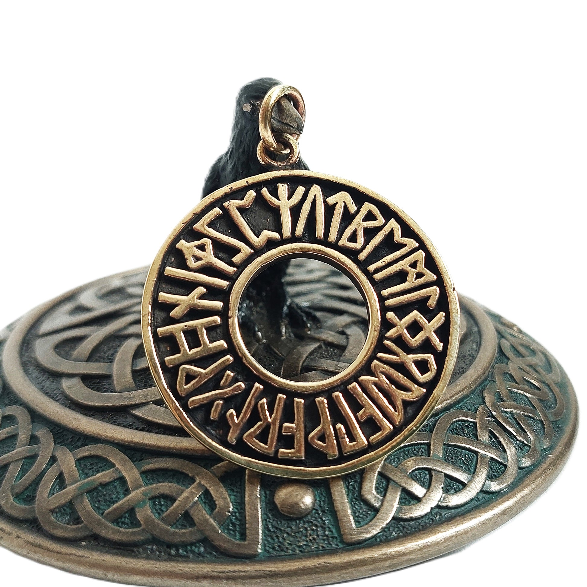 Anhänger: Magischer Runenkreis Futhark aus Bronze