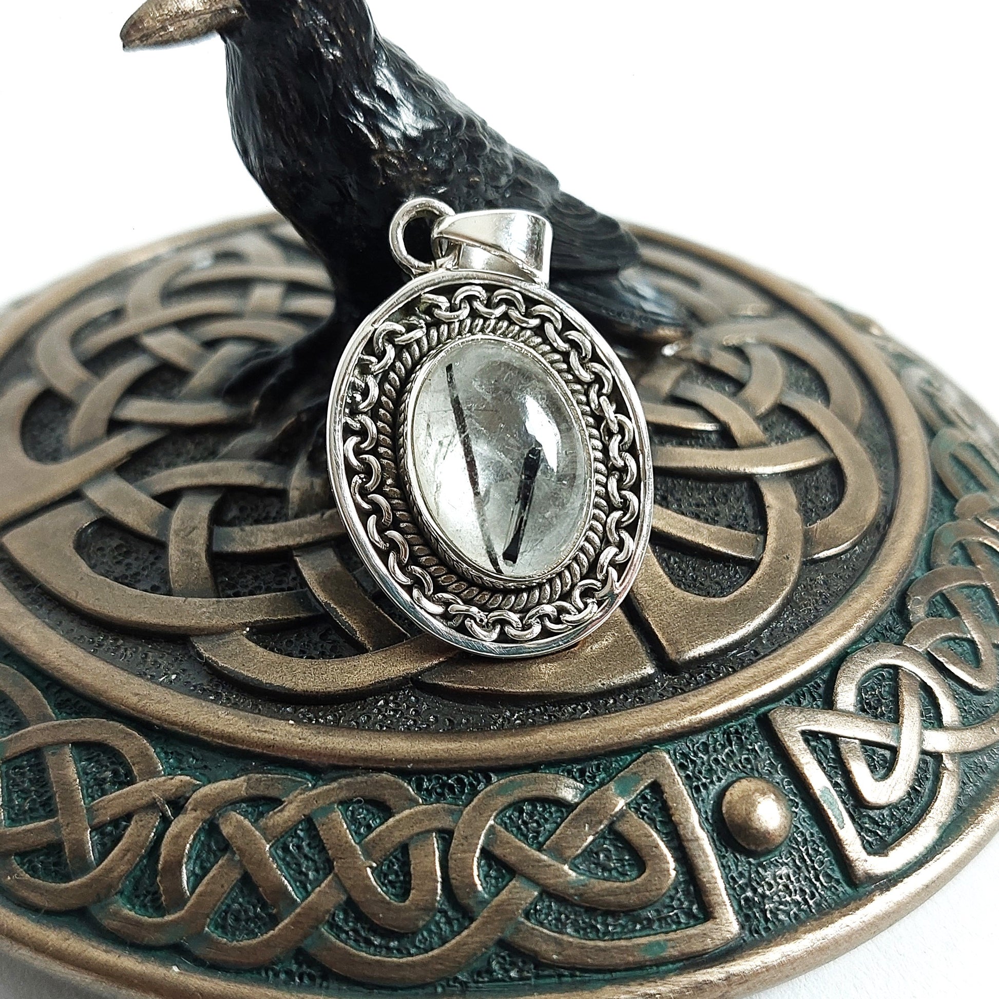 Seelenspiegel aus Sterlingsilber umrahmt Rutilquarz