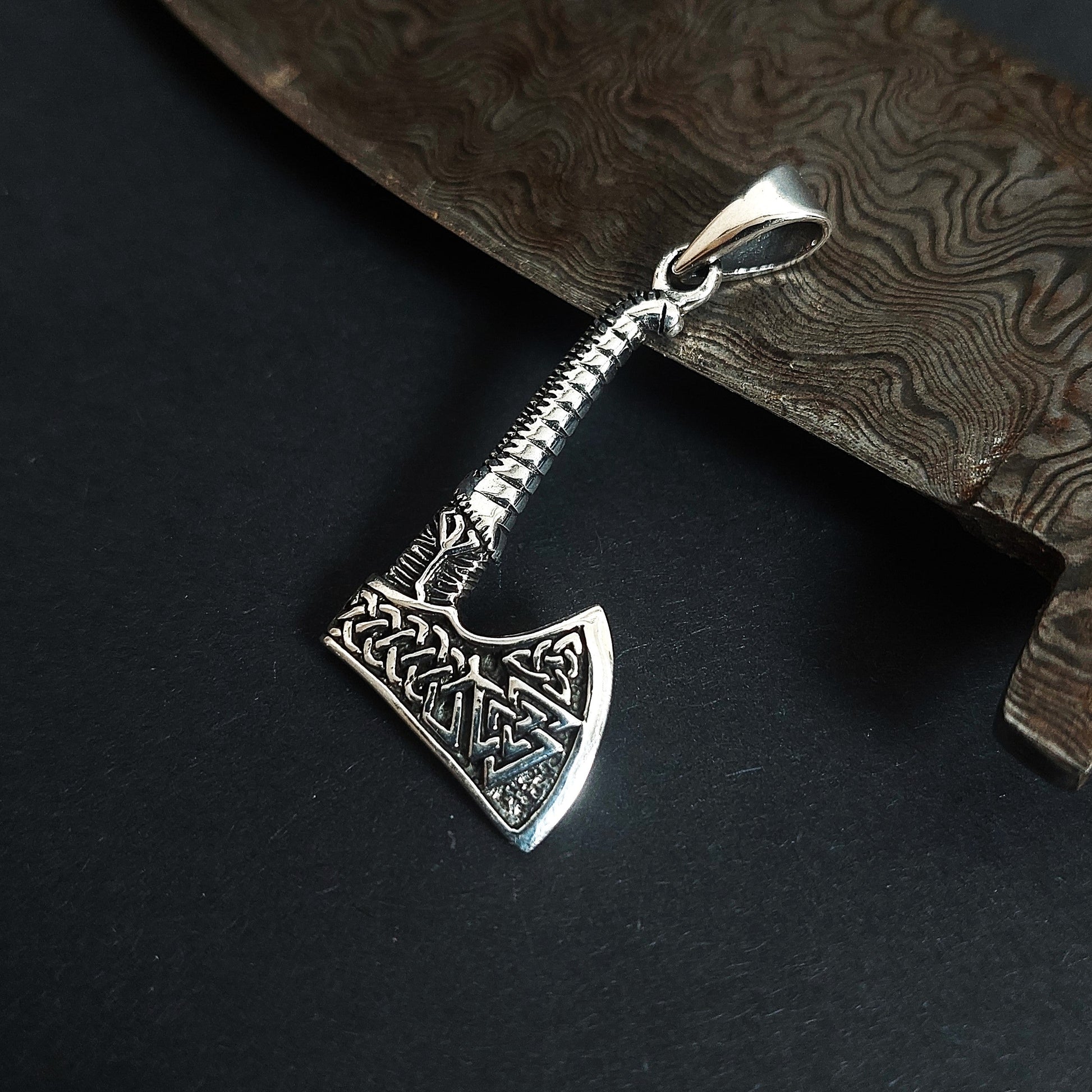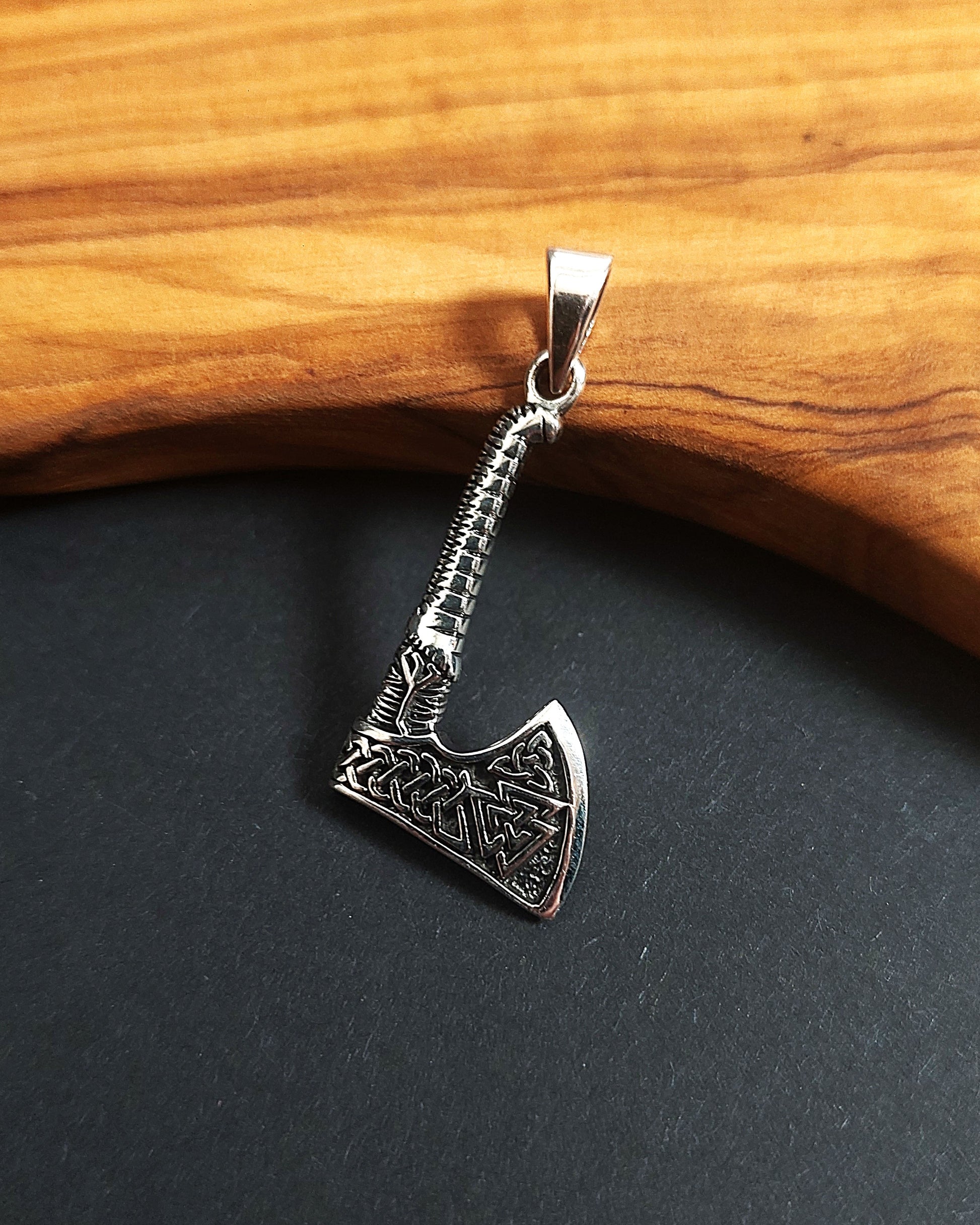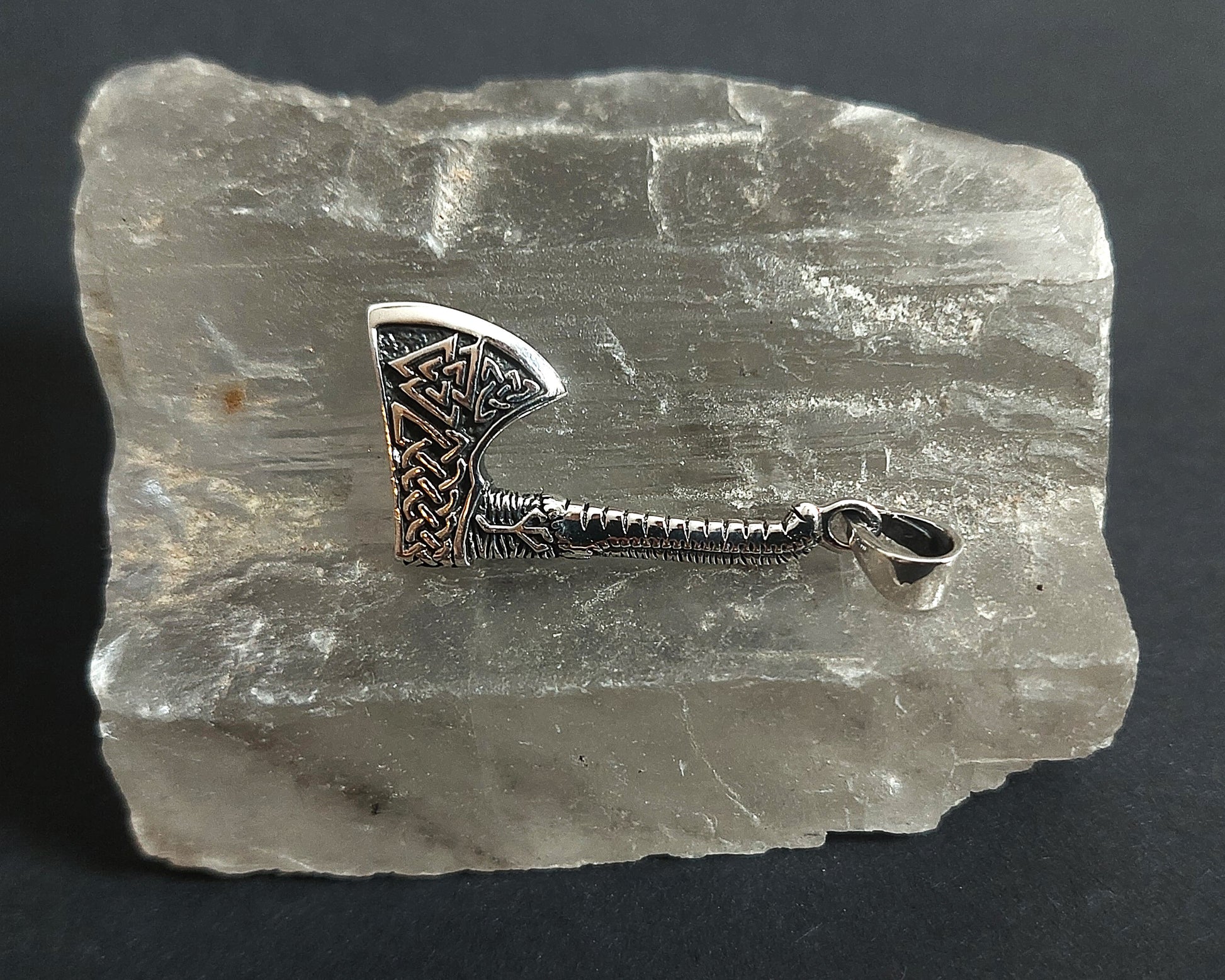Detailliert verzierte Wikingeraxt mit Wotansknoten und Lebensrune