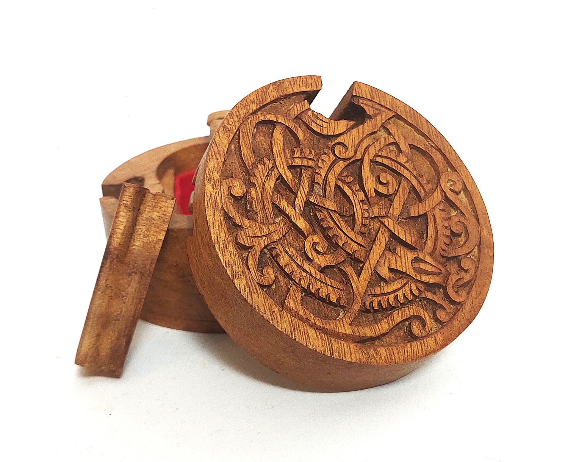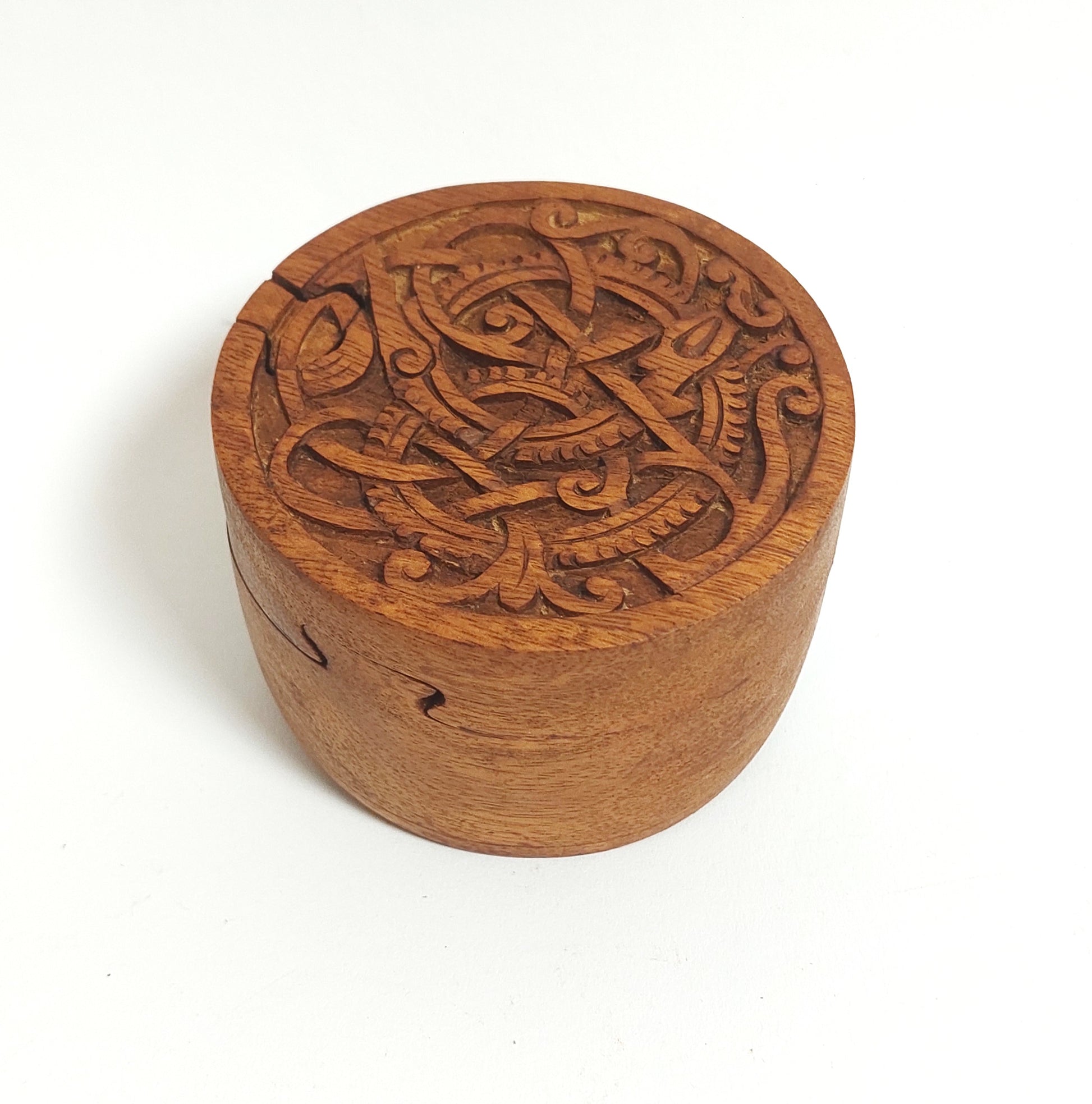Mit Midgardschlange verzierte Schmuckdose aus Holz