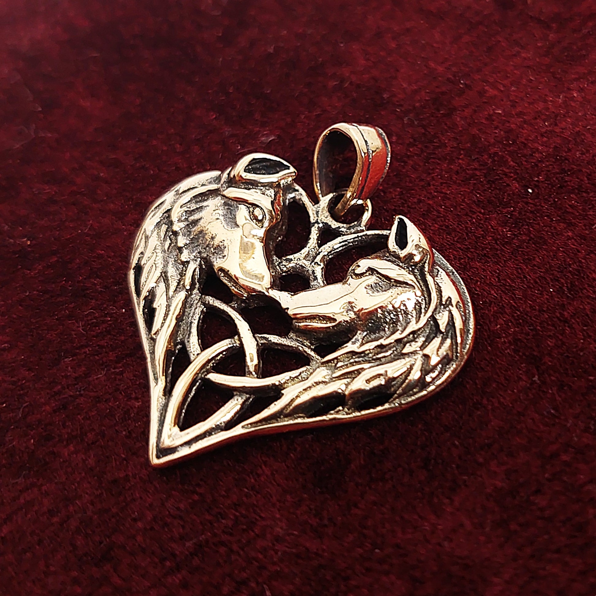 Wolfsherz - Mystischer Anhänger aus Bronze mit keltischem Flechtmuster